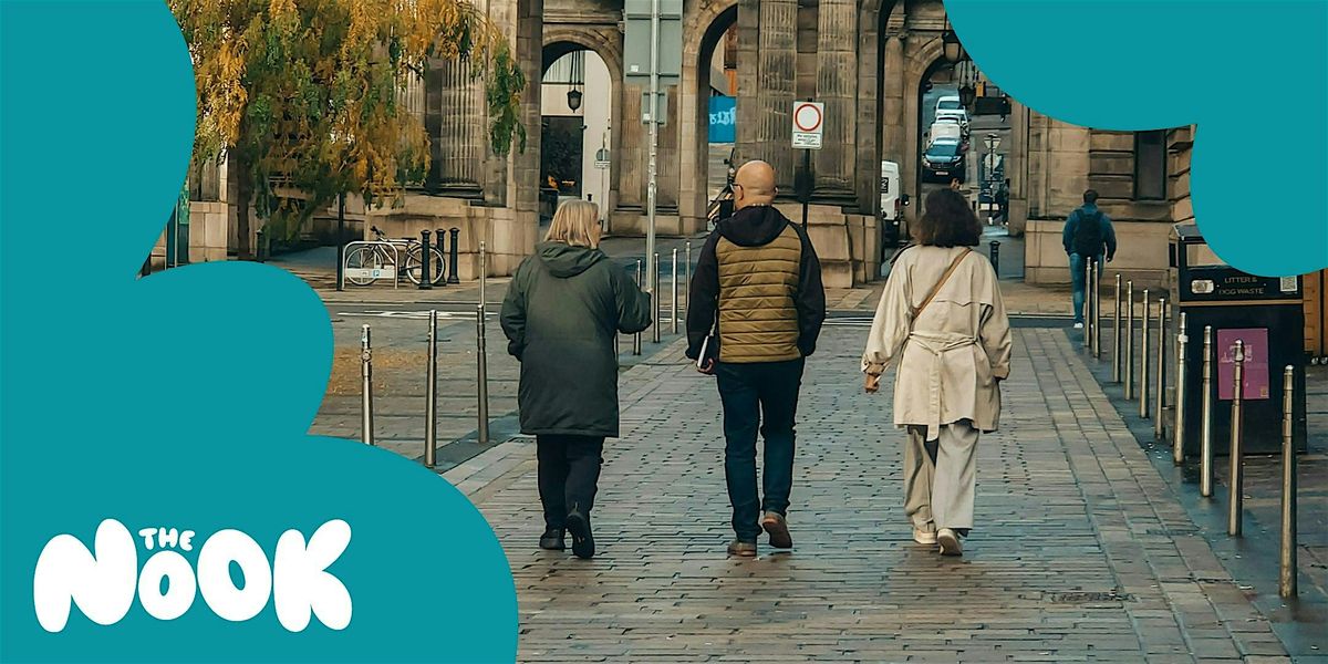 Join us on a 3-4km walk or wheel starting from The Nook in Glasgow's Merchant City. Walking is a great way to get active, connect with others, and take notice of what's around you. Join us to get moving for your mental health and visit The Nook after for a hot drink and opportunity to access our great resources.