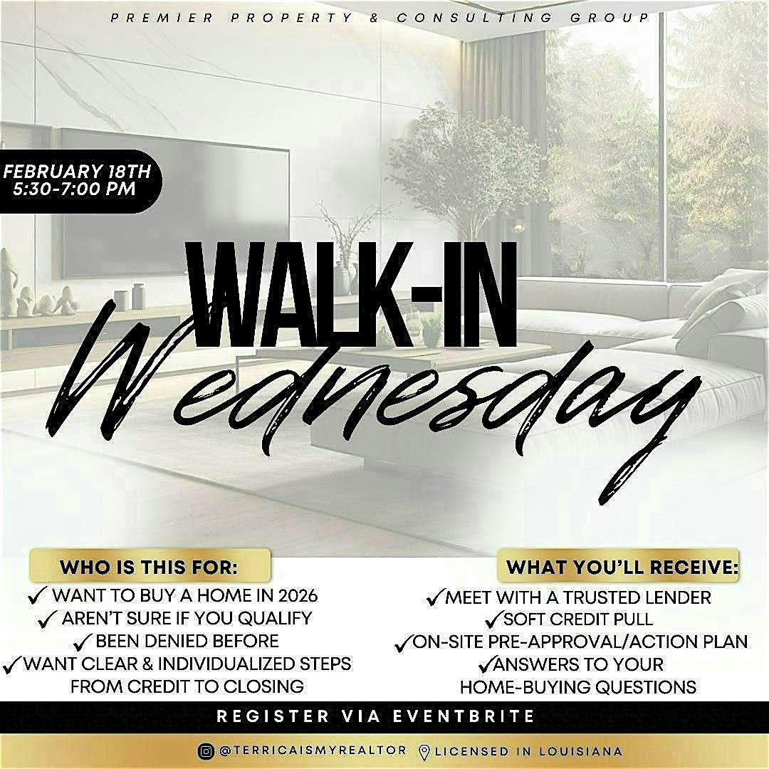 Walk-In Wednesday is an in-person homebuyer strategy session designed to help you understand exactly where you stand in the home-buying process and what steps to take next.