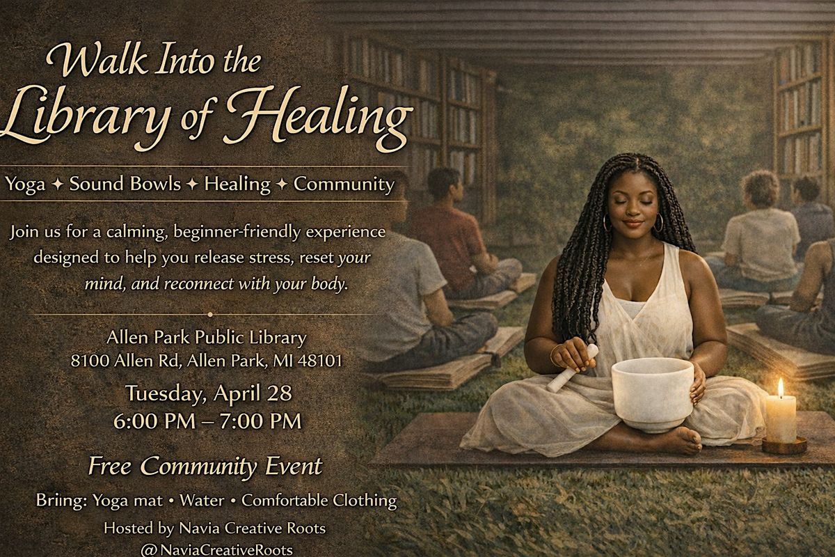 “Walk Into the Library of Healing” is a unique wellness experience where movement, sound, and community come together in a calm and supportive environment.