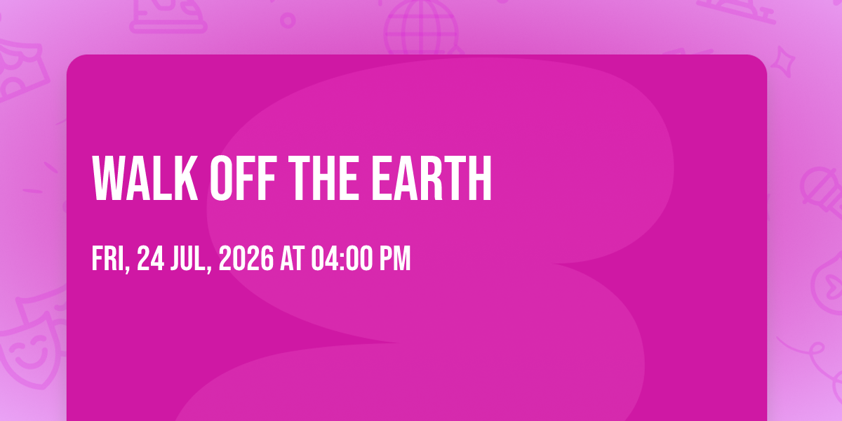 π Be part of history at Walk Off The Earth, an extraordinary gathering that will captivate your imagination! ποΈ The prestigious The United Theater on Broadway - Los Angeles in Los Angeles, CA sets the stage for an unforgettable experience on July 24th, 2026 at 04:00 PM. β¨ They are bringing together the finest elements of entertainment and innovation to create moments that will take your breath away. From the moment you arrive, you'll be immersed in an atmosphere of wonder and excitement. π― This carefully planned event ensures every guest experiences something truly special. π Early booking is recommended for this must-attend event of the season!http://maps.seatics.com/AceHotel_Endstage_2017-03-17_2017-02-02_1145_SVGC_tn.gif