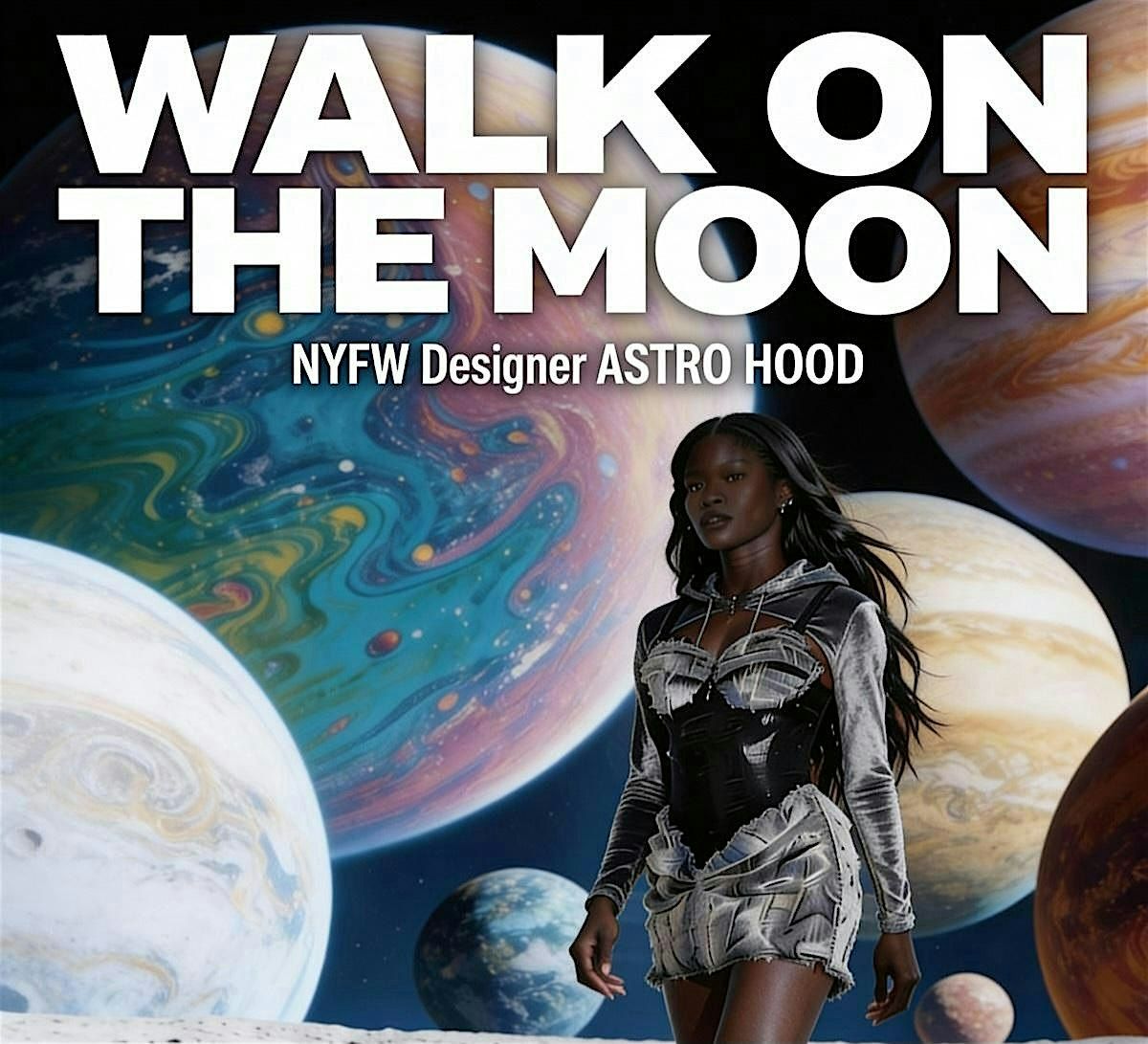 "Walk on the Moon," an immersive NYFW fashion showcase by AstroHood. A celestial streetwear experience. #WalkOnTheMoon #AstrosHood #NYFW