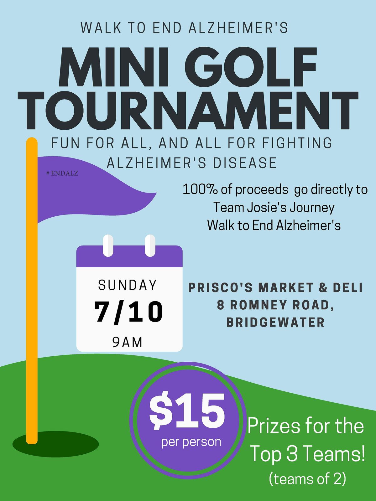 A morning of Mini Golf Tournament fun, Two person teams, Community camaraderie, Prizes and Raising Funds to End Alzheimer's!About this Event