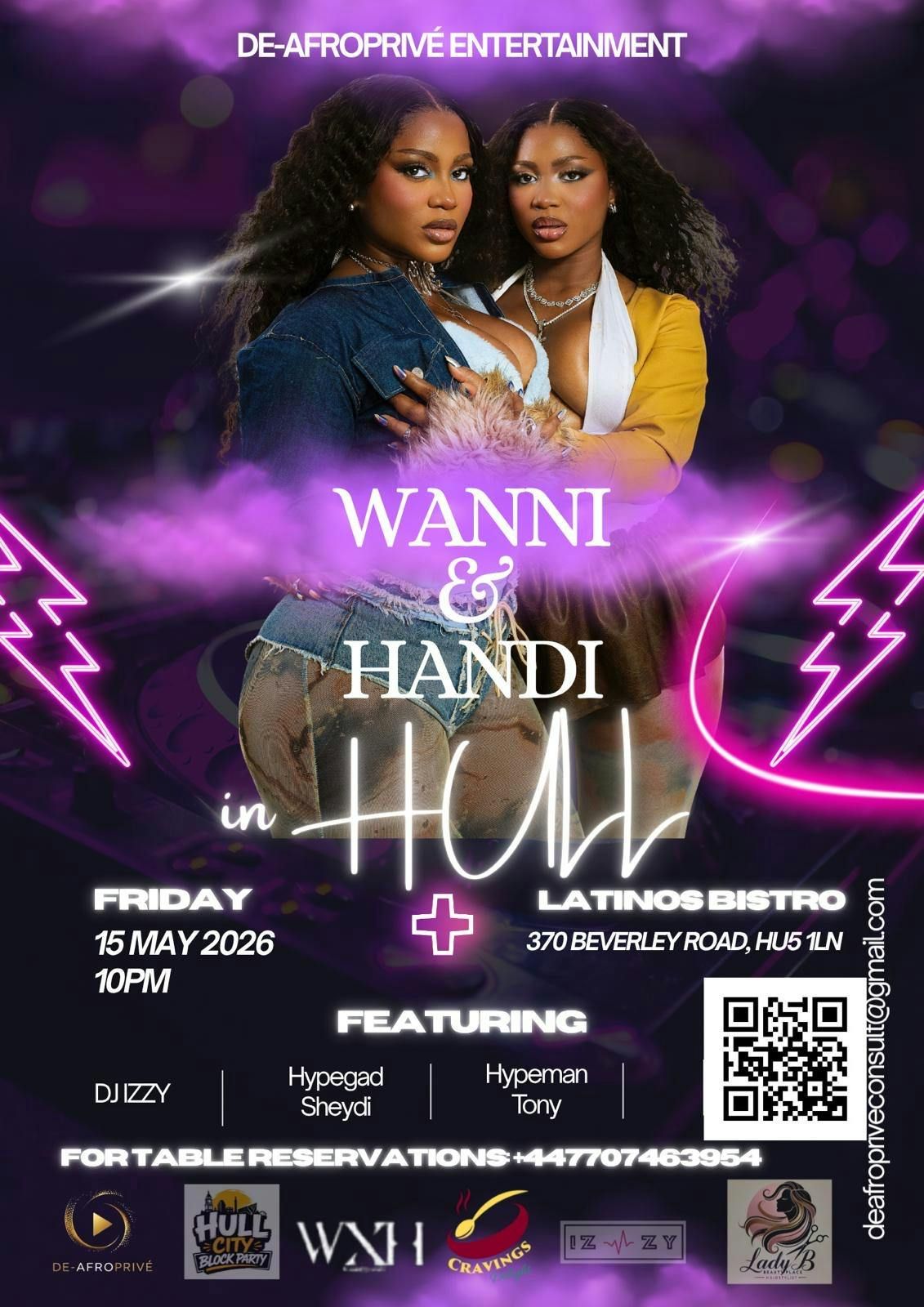 Get ready for the ultimate high-energy experience as the dynamic duo Wanni x Handibring their electrifying energy to the UK for an unforgettable Afrobeat takeover!Known for their synchronized choreography, unmatched stage presence, and seamless mixing, the "Queens of Afro-House" are set to deliver a night of pure sonic explosion. This isn't just a party—it’s a high-octane celebration of rhythm, culture, and non-stop vibes.Disclaimer: