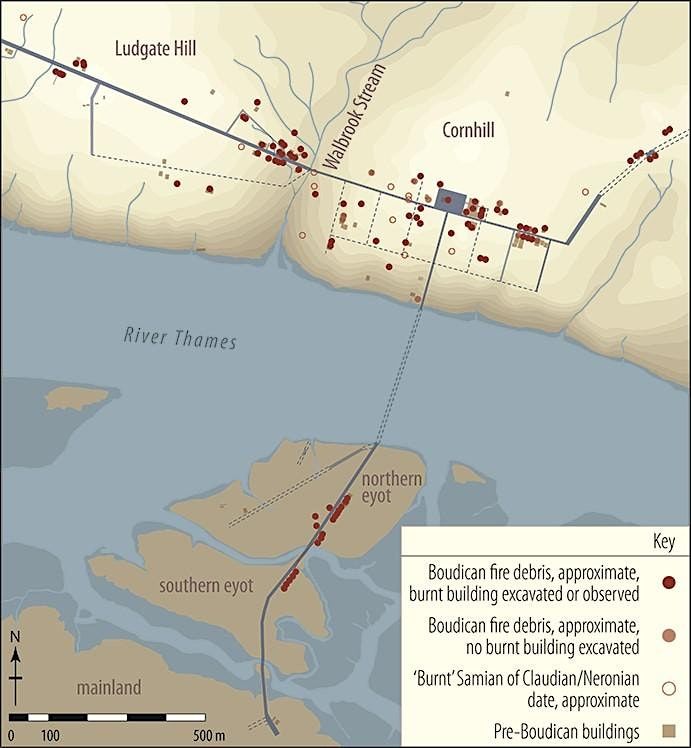This talk explores archaeologists' interpretations of Roman London in the AD 60s, as the inhabitants returned and rebuilt their homes and businesses following the destruction of the city during the Boudican Revolt. It puts the hypothesis that London was a city in ruins under scrutiny to examine whether archaeologists were arguing from the evidence, or from their own assumptions.
