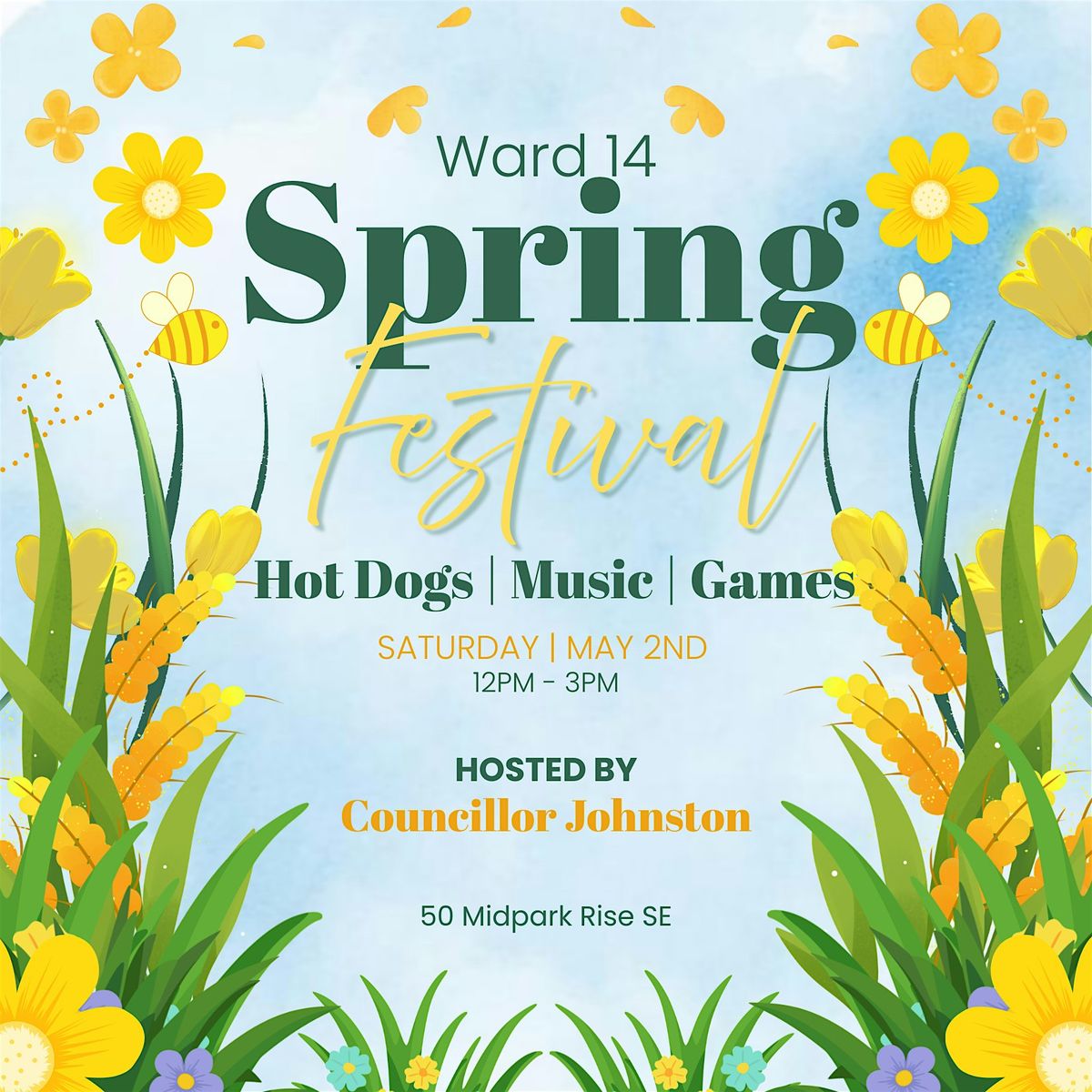 Come join us at the Mid-Sun Community Centre for the Ward 14 Spring Festival! It's happening on May 2, 2026 at 12:00 PM (MDT). Expect lots of fun, great company, and a chance to celebrate the season with your neighbors. Don’t miss out on this awesome community event—see you there!