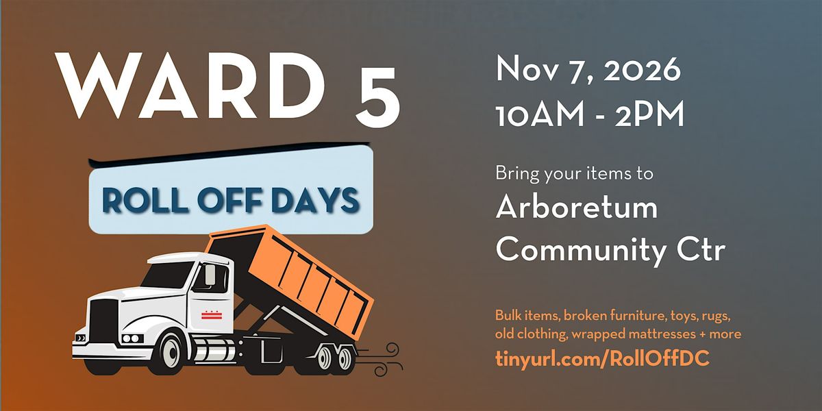 Hello Ward 5! DC residents are encouraged to bring their large, non-hazardous materials for disposal to the next Roll Off Day: