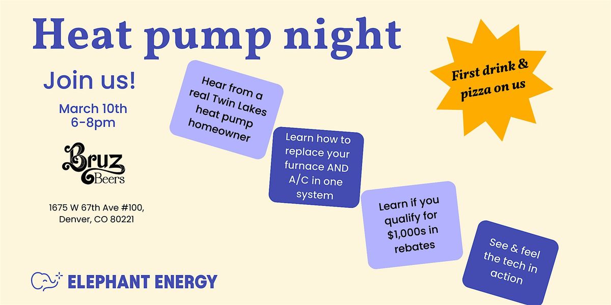 Join Elephant Energy at Bruz Beers on March 10th, 2026 for a laid-back homeowner night all about modern electric heating and cooling options for homes built in the early 2010s or later.