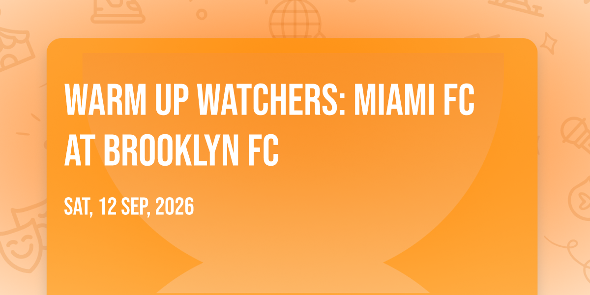 π Location: 40.5748, -73.9844β¨ Experience the magic of Warm Up Watchers: Miami FC at Brooklyn FC, where moments become memories that last a lifetime! ποΈ The iconic Maimonides Park in Brooklyn, NY sets the perfect stage for an unforgettable celebration on September 12th, 2026 at 11:00 PM. π It's been a curated experience that brings together the best of entertainment and innovation, creating an atmosphere of wonder and excitement. From the moment you arrive, you'll be immersed in a world where the ordinary transforms into the extraordinary. π Book early to secure your place in what promises to be an event that will be talked about for years to come!
