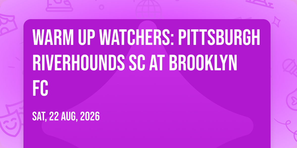 📍 Location: 40.5748, -73.9844🎉 Welcome to Warm Up Watchers: Pittsburgh Riverhounds SC at Brooklyn FC, where the impossible becomes possible and dreams take flight! 🏛️ Join us at Maimonides Park in the heart of Brooklyn, NY for an event that will redefine your expectations. 📅 On August 22nd, 2026 at 11:00 PM, witness the transformation of space and time into something truly magical. ✨ It's a curated experience combining the best of innovation, entertainment, and community spirit, creating moments that will be remembered for years to come. Whether you're a first-time visitor or a seasoned enthusiast, prepare to be amazed. 🎊 Book now to ensure your place in this unforgettable experience!
