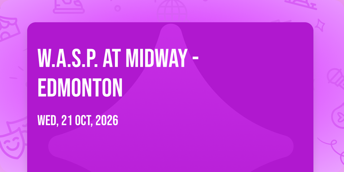 ✨ Enter a world of endless possibilities at W.A.S.P. at Midway - Edmonton, where every moment tells a story! 🏛️ The stunning Midway - Edmonton in vibrant Edmonton, AB transforms into a realm of wonder on October 21st, 2026 at 07:00 PM. 🌟 They have crafted an experience that goes beyond the ordinary, combining elements of surprise, delight, and pure entertainment. Every detail has been thoughtfully considered to ensure your journey with us is nothing short of extraordinary. 🎯 Join fellow adventure seekers and memory makers in this celebration of imagination and innovation. 🎊 Reserve your spot today and be part of something truly special!
