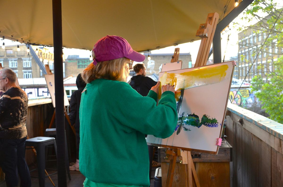Please note the class will be taking place in the beautiful garden/rooftop space at Barge East. There will be a tent overhead, but we will be essentially working & painting outside, so do dress appropriately! We'll be using acrylic paints, which are water based and wash out of clothing, but I would recommend not getting too dressed up, or to bring an apron/change of clothes if you're worried about mess.
