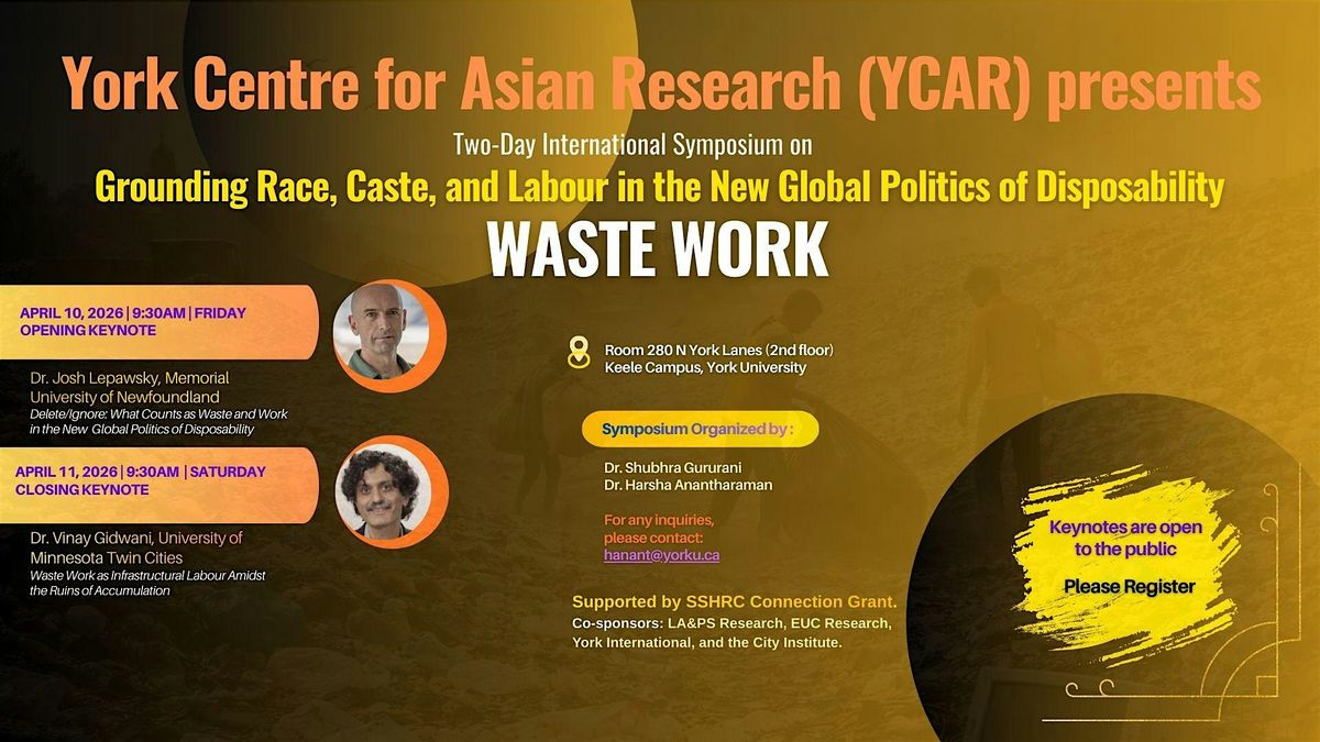 The York Centre for Asian Research (YCAR) at York University presents a two-day international symposium examining the global politics of waste, labour, and inequality.
