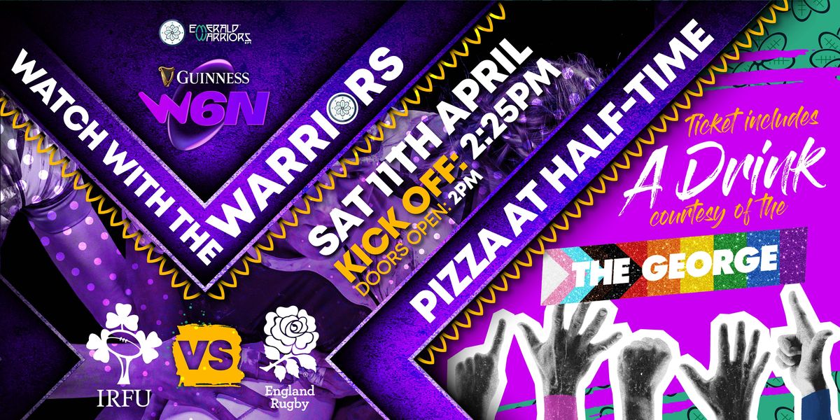 Come on down and watch the Ireland v England match with the Emerald Warriors. Your ticket includes Pizza at half time, and a pint courtesy of The George!