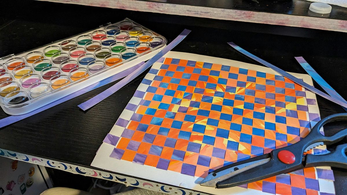 In this workshop, we will first use watercolor and paper to make soothing prints and patterns, which we will then cut and weave, transforming them into beautiful paper weaving artworks. The process takes some time and precision, and is well worth the results! While being a gradual process, it is a very rewarding art and craft for beginners, young and old! After this class, you will go home with the knowledge of how to take a peaceful and meditative moment to create beauty.