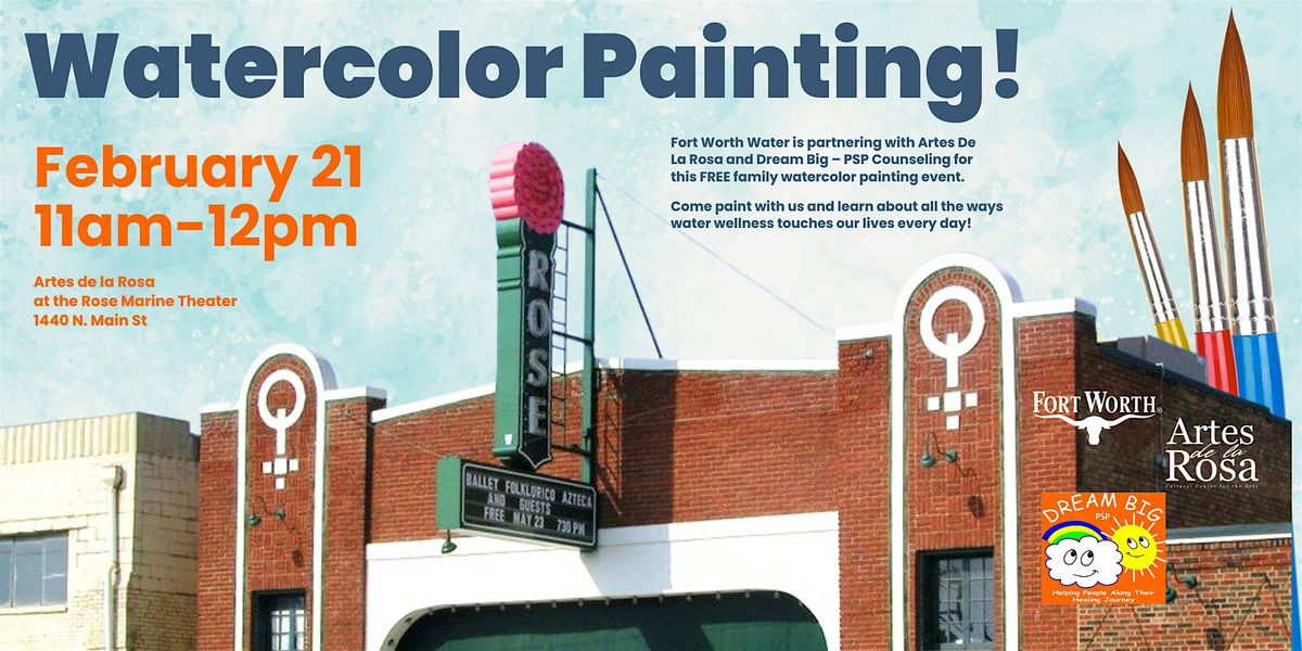 Fort Worth Water is partnering with Artes De La Rosa and Dream Big – PSP Counseling for this FREE family watercolor painting event!