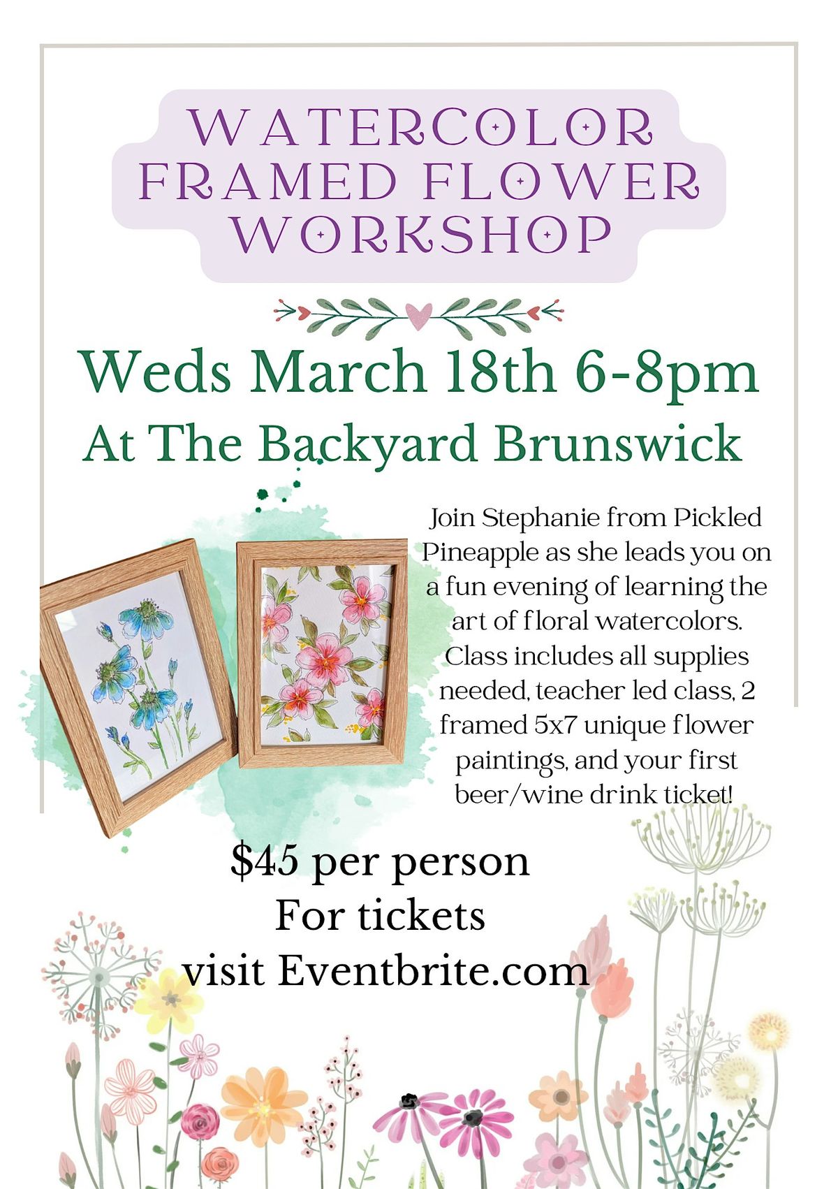 Watercolor Framed Flower Workshop at The Backyard Brunswick
