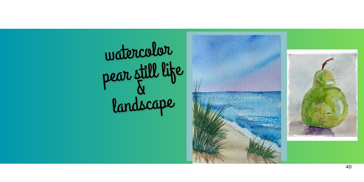 Watercolor Landscape and Pear Still life. All levels welcome.