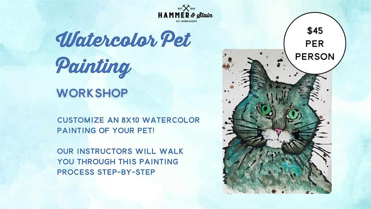 Show off your furry best friend in watercolor form! Join us for a relaxing evening of painting as you create a custom Watercolor Pet Portrait you’ll treasure forever.