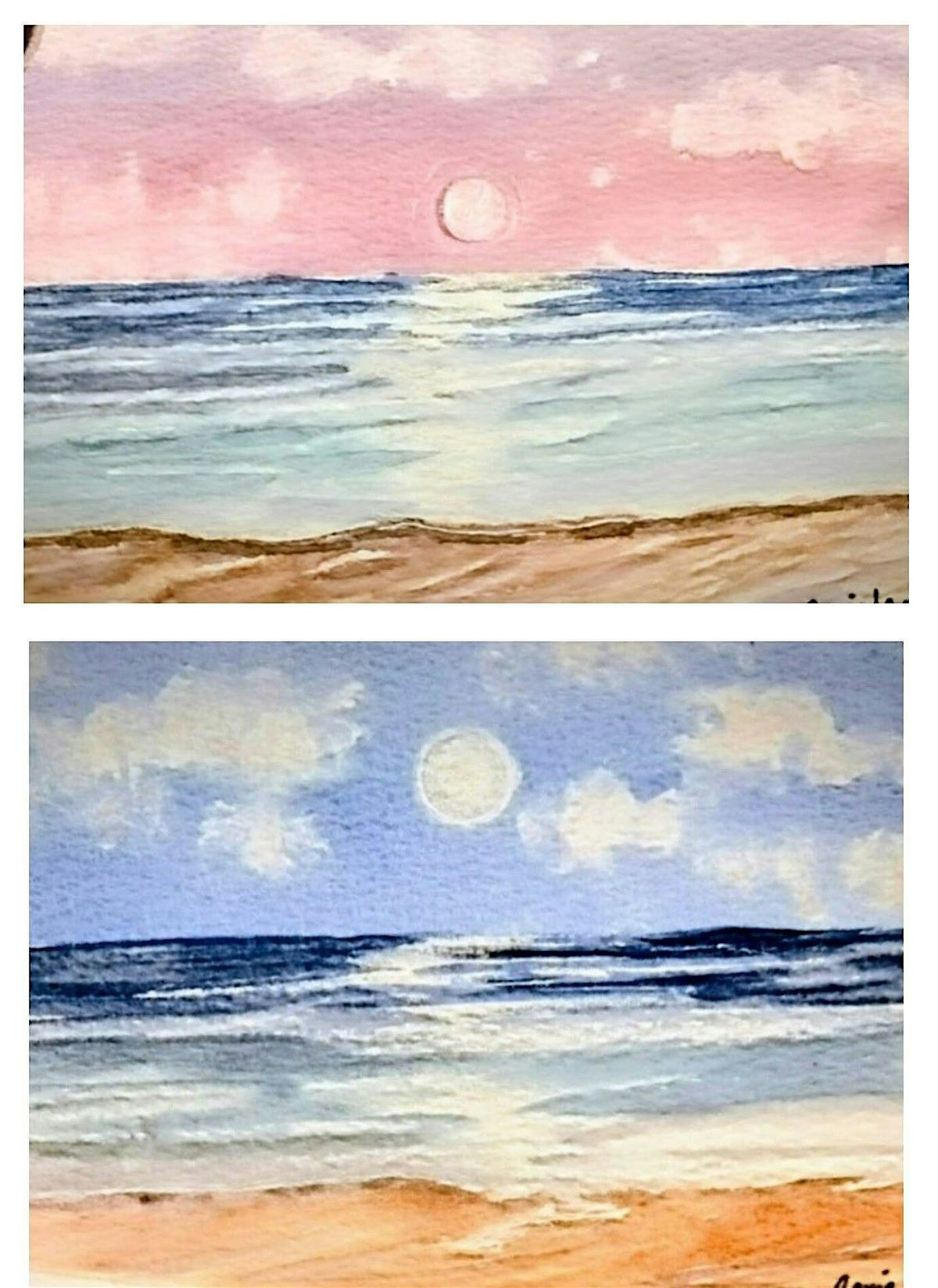 Students will learn how to blend soft skies, capture gentle ocean waves, and create depth and movement with watercolor. Best of all, you’ll choose your own paint color palette—sunrise, sunset, moonlit, or classic coastal blues—making your artwork truly one of a kind.