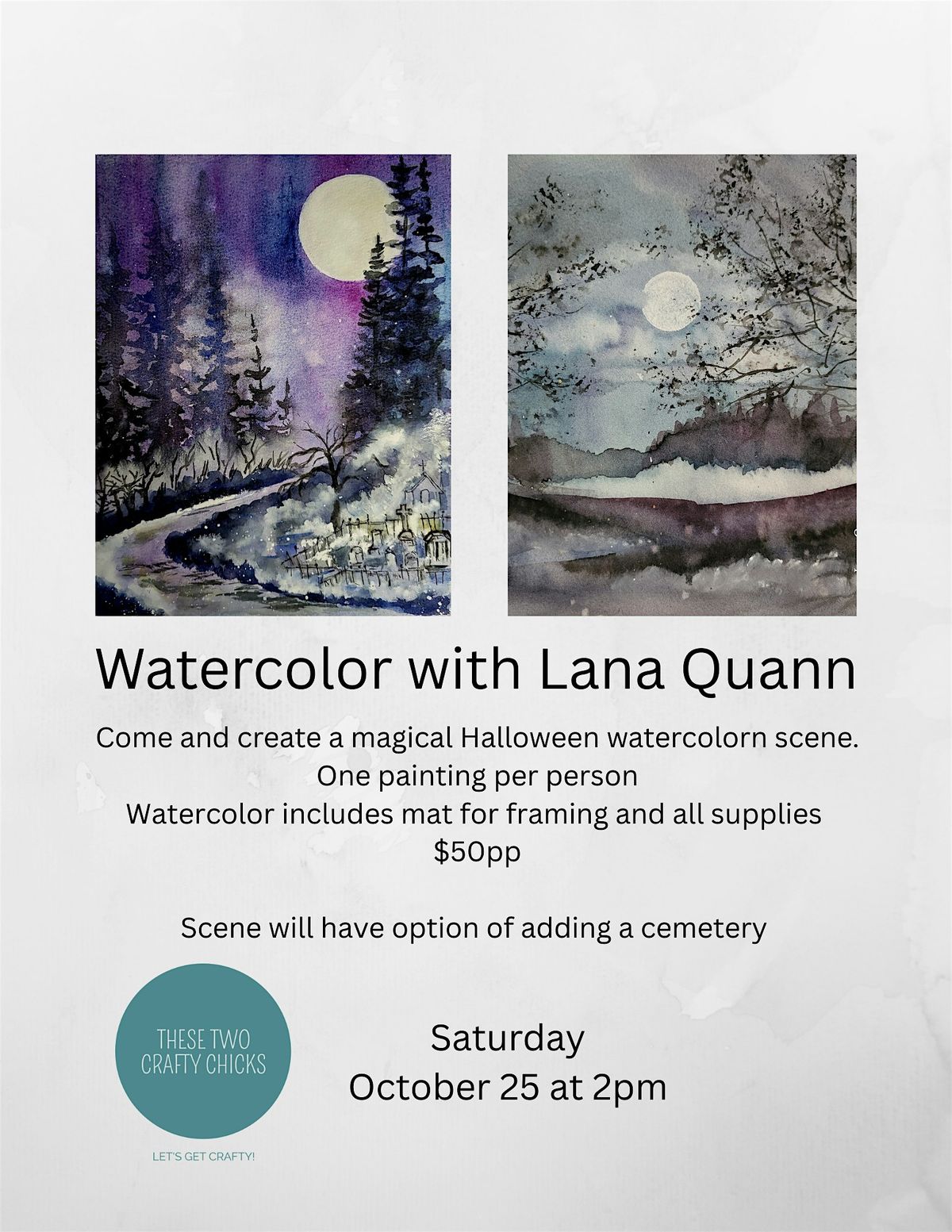 Join us for Watercolor with Lana Quann at These Two Crafty Chicks! Lana is a talented watercolor artist who will guide you through creating your own masterpiece. No experience necessary - Lana will help you unleash your inner artist! All materials will be provided, just bring your creativity and maybe a friend or two. Don't miss this chance to relax, have fun, and get in touch with your artistic side. See you there!