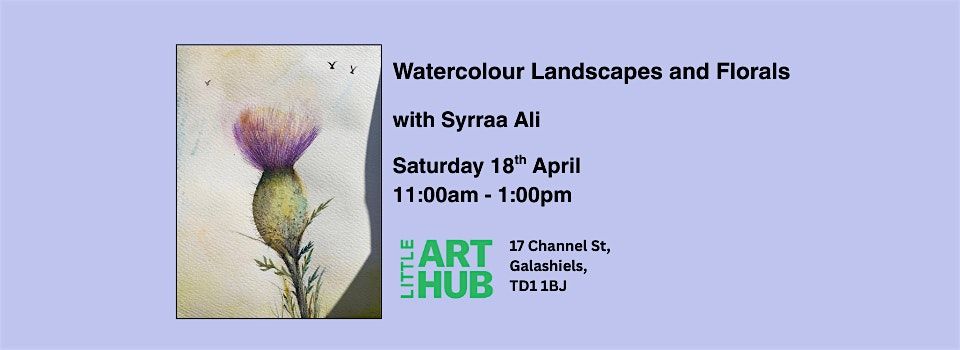 Join Syrraa Ali for a calm and creative session focused on simple watercolour techniques for painting soft floral compositions or landscape scenes. This is a taster session for future workshops.