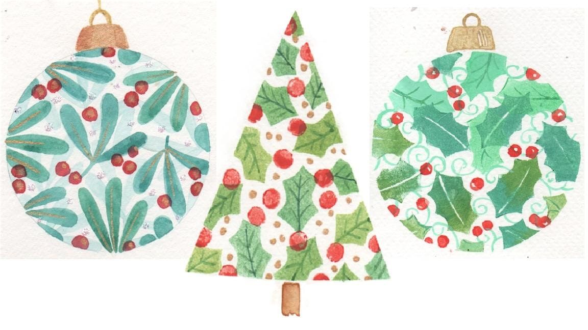 Learn how to mix colours, use different brushes and tools (and even a bit of simple printing) to create lovely illustrative images inspired by the winter festive season.