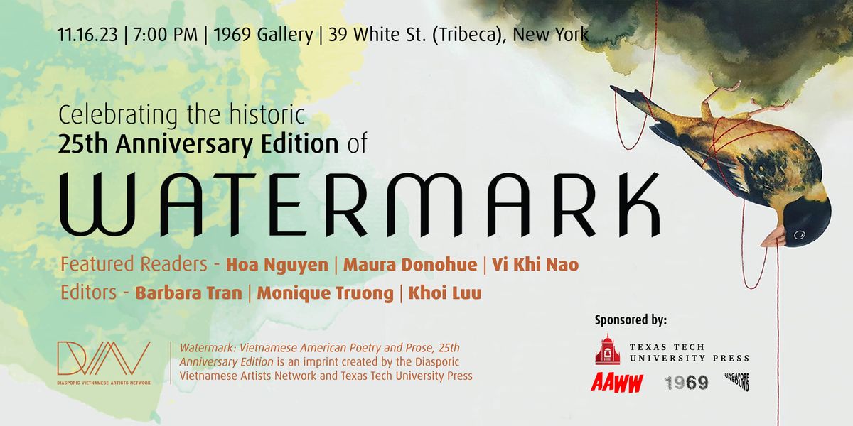 25 years ago, Watermark: Vietnamese Poetry & Prose was published by the Asian American Writers' Workshop. A work both foundational and pathbreaking, Watermark provided a platform for Vietnamese writers to share authentic and personal narratives. Now, in 2023, a 25th anniversary edition is being released and we would love for you to celebrate with us!