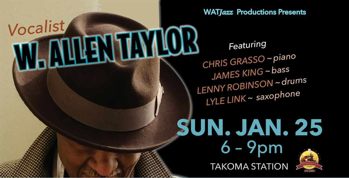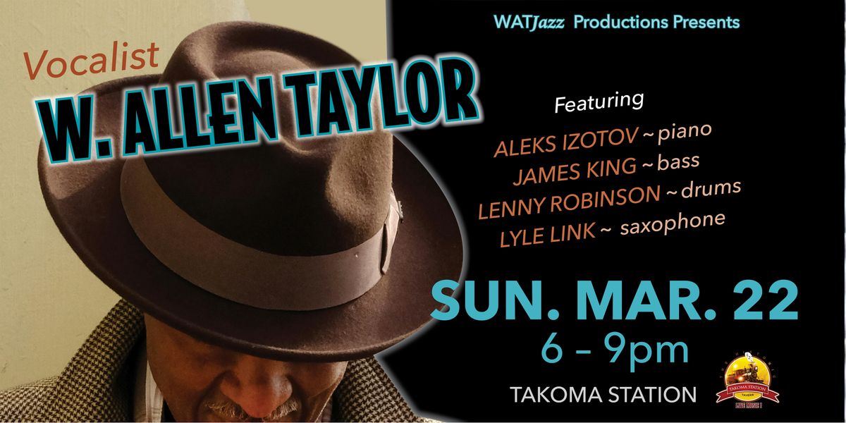 Jazz vocalist W. Allen Taylor performs with a quartet of stellar musicians at the historic Takoma Station Tavern, known for showcasing some of the D.C. area's finest musical talent. Former winner of the San Francisco Bay Area's "Jazz Search West Competition", Taylor combines originality with a style reminiscent of the golden age of jazz singing, with vocal influences that include Al Jarreau, Betty Carter and Nat King Cole. Come and experience the great vibes, food and drink of this treasured venue, and an evening of marvelous music that will celebrate the jazz vocal tradition. And they WILL be swingin'!!