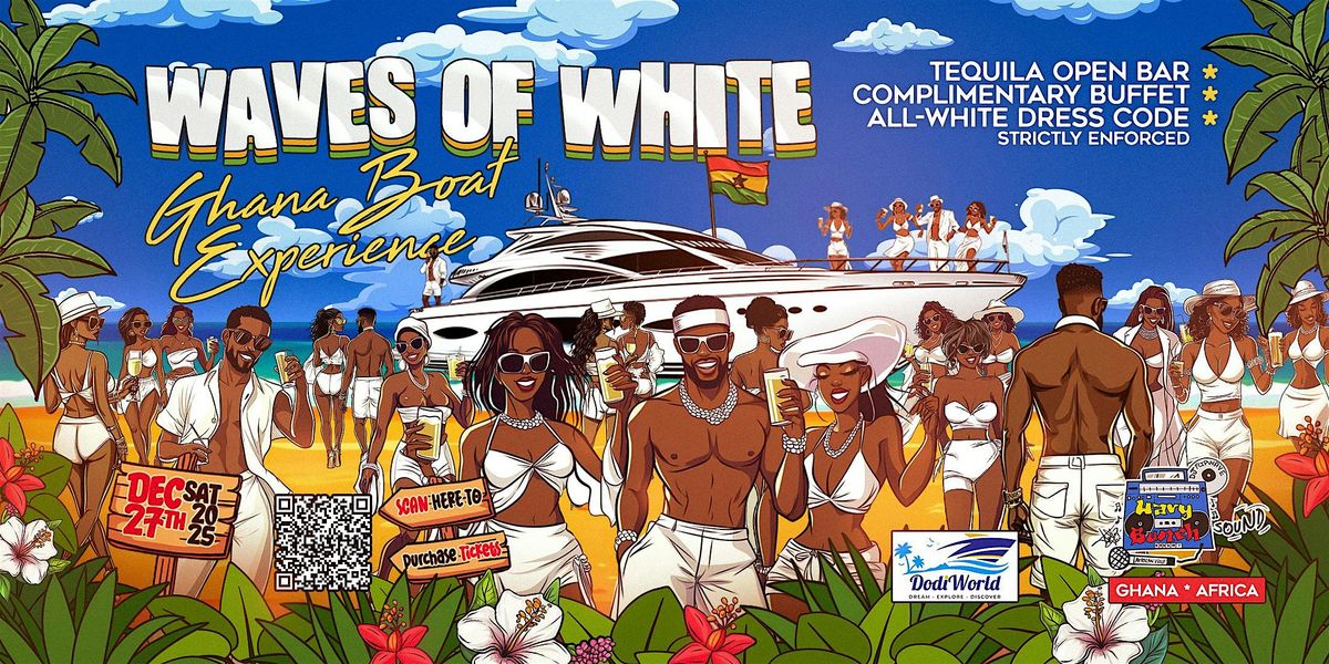 #WavesOfWhite #AfricanWolf #GhanaBoatExperience #AllWhiteAffair #WavyBunchSound #GhanaNightlife #YearOfReturn #AfrobeatVibes #DiasporaConnection #GlobalVibes
