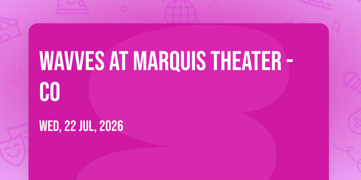 π Prepare to be amazed at Wavves at Marquis Theater - CO, the most anticipated gathering of the season! π Set against the stunning backdrop of Marquis Theater - CO in vibrant Denver, CO, this event promises to redefine your expectations. π Mark your calendars for July 22nd, 2026 at 07:00 PM and get ready to immerse yourself in an atmosphere of wonder and excitement. β¨ From the moment you arrive, you'll be transported into a world where memories are made and stories come alive. They have crafted an experience that perfectly harmonizes entertainment, innovation, and community spirit. π Join us as we create moments that will be discussed for years!