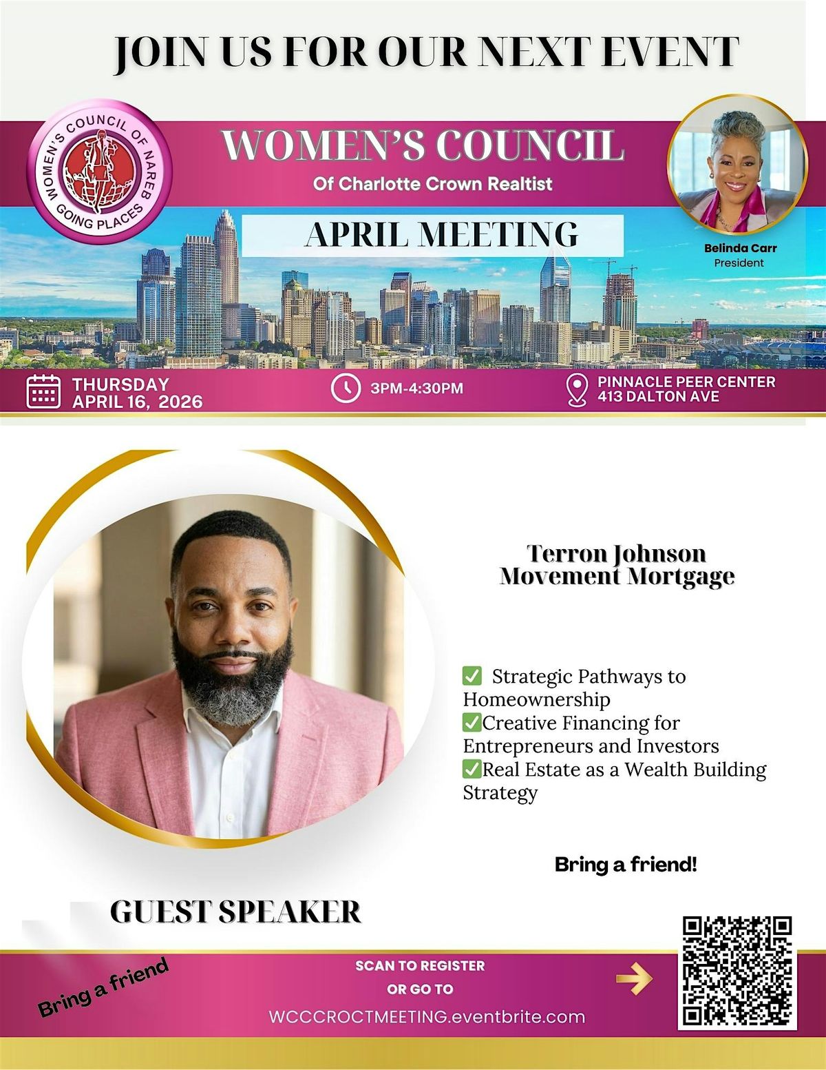Join the Women’s Council of Charlotte Crown Realtist for an inspiring monthly meeting designed to educate, empower, and connect. This month’s lineup features expert guest speakers in mortgages, business coaching, and credit counseling who will share practical strategies you can use right away.