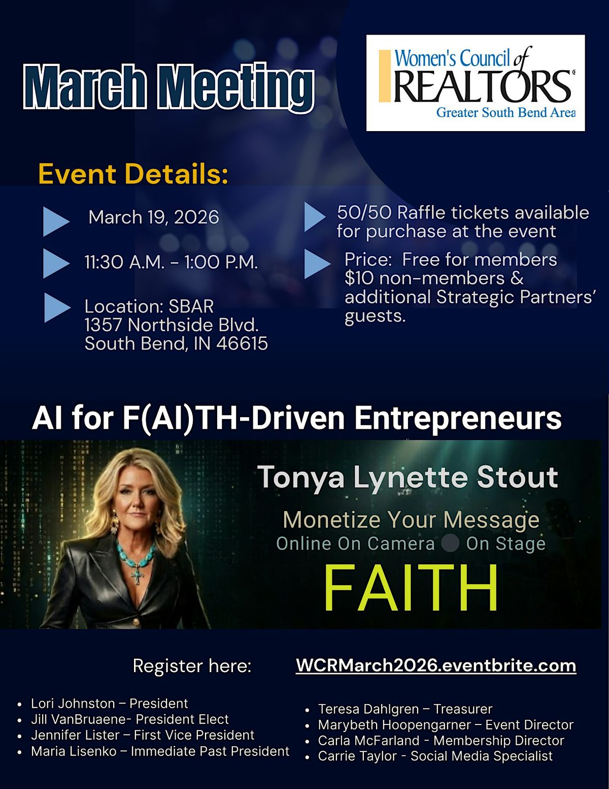 Join the Women’s Council of REALTORS® – Greater South Bend Area for our March 2026 Membership Meeting, featuring guest speaker Tonya Lynette Stout and her powerful presentation: