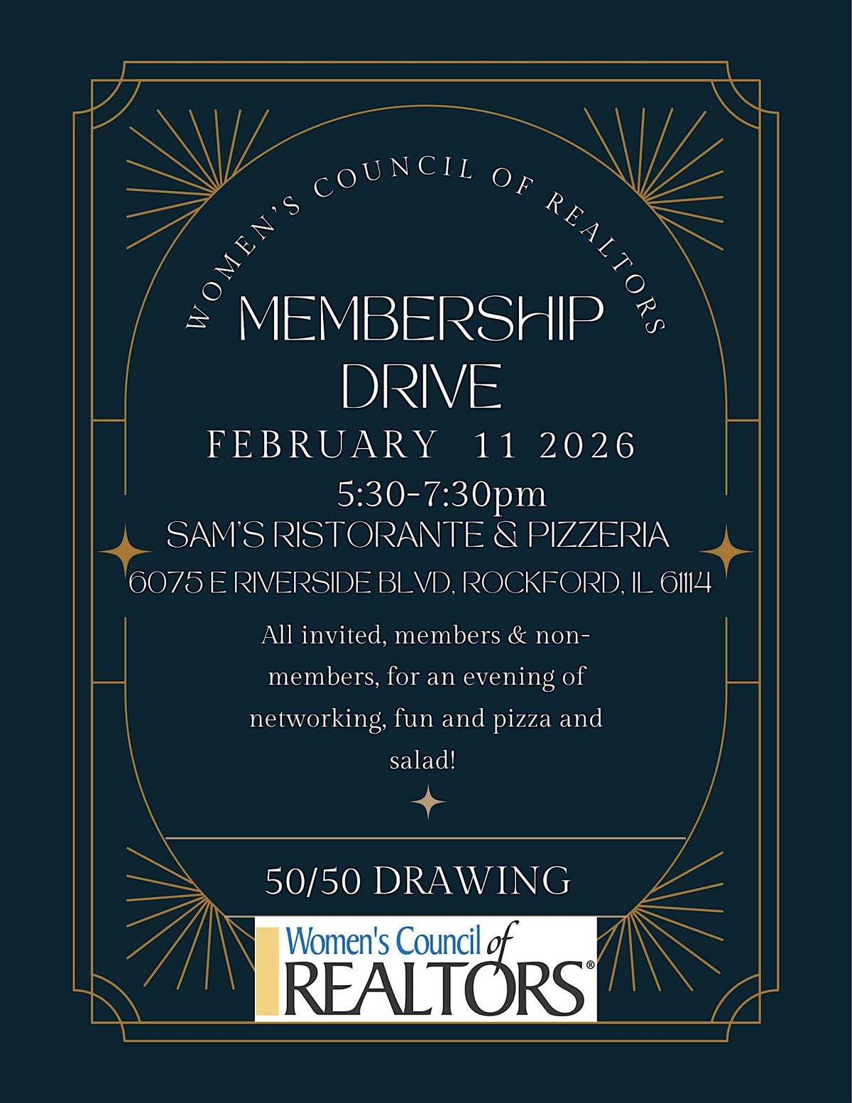 All invited, members & non-members, for an evening of networking, fun and pizza and salad! Swing by our in-person event and get the lowdown on all things WCR in the Rockford area. Whether you're new or a familiar face, this is the perfect chance to meet, mingle, and see what’s in store. Don't miss out on the fun and networking — we can’t wait to see you there!