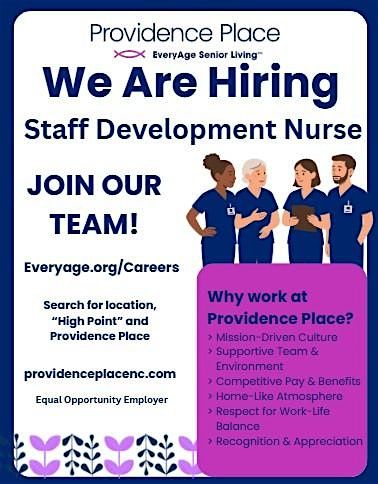 Hey there! We're looking for a passionate Staff Development Nurse to join our team. Swing by or Contact us at [email protected] to 1795 Westchester Dr anytime between March 17, 2026 and April 30th at 10:00 AM (Eastern Time) to 4:30 PM to learn more and chat with us in person. Don’t miss this chance to be part of something awesome!