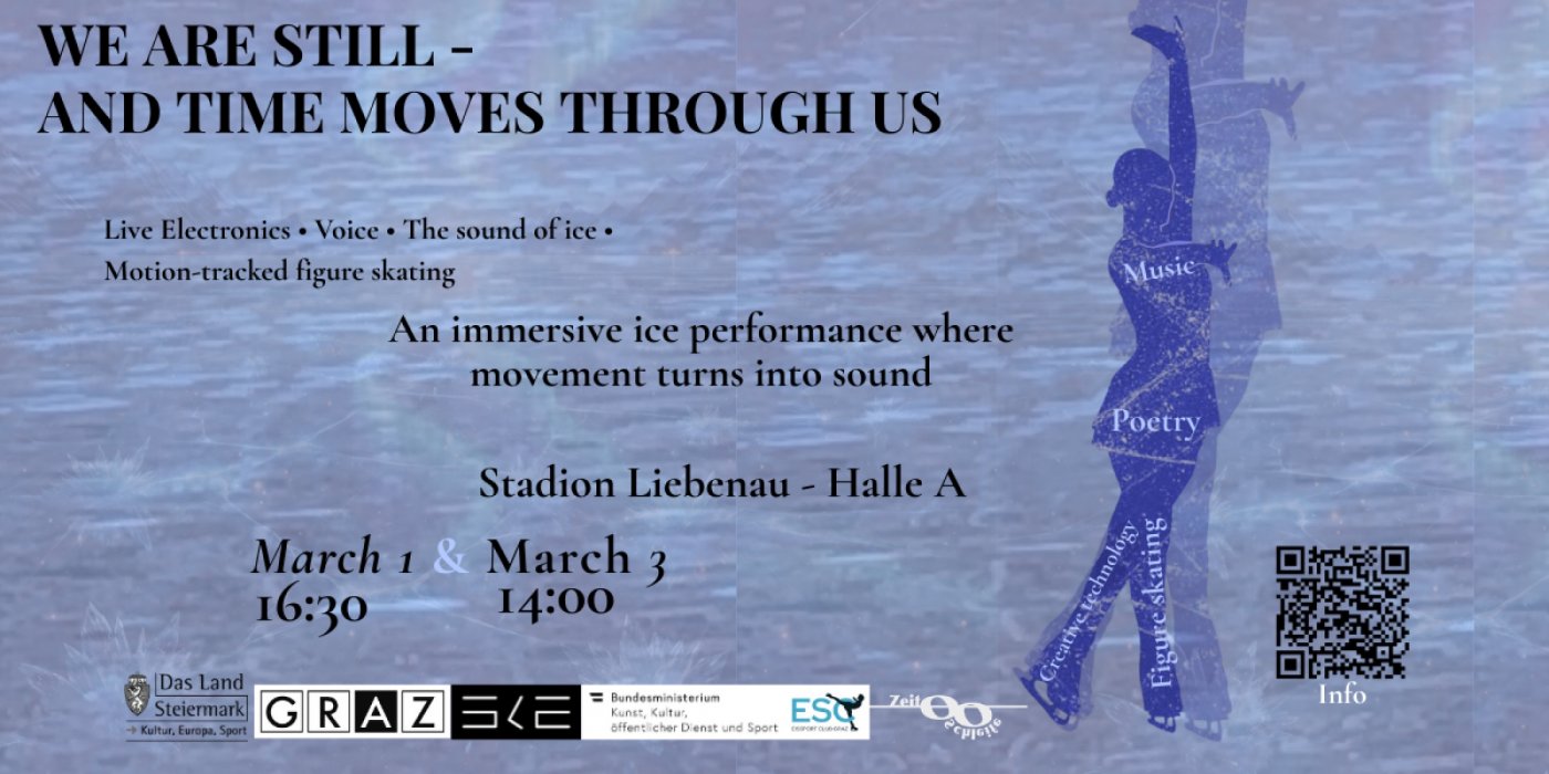 We Are Still and Time Moves Through Us is an interdisciplinary performance project that brings together contemporary composition, figure skating, literary arts, and real-time sound processing in an ice arena.