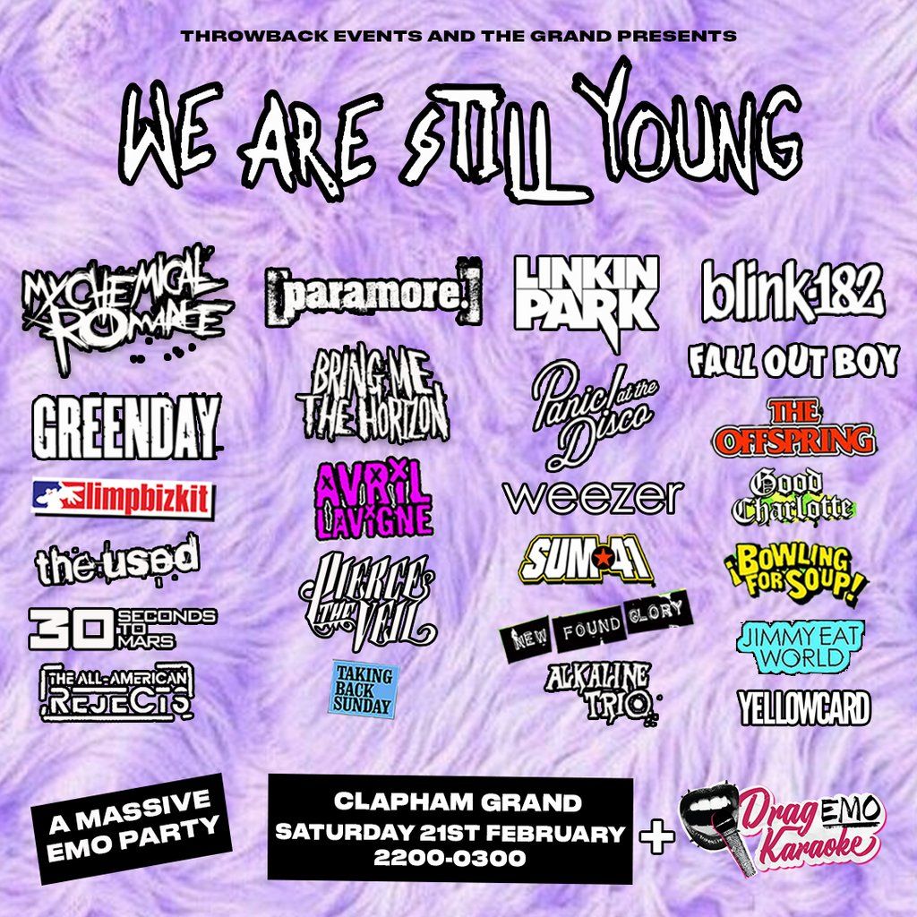 WE ARE STILL YOUNG THE CLUB NIGHT RETURNS, WITH DRAG EMO KARAOKE ON OUR MAIN STAGE, FOR HUGE EMO PARTY!Music Genres : Rock, Alternative, Emo, Pop Rock