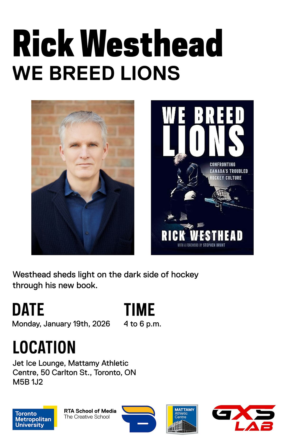 Join us a talk with award-winning journalist and alumnus Rick Westhead on his new book We Breed Lions: Confronting Canada's Troubled Hockey Culture. This powerful event will shine a light on the persistent and devastating issues within Canadian hockey and sport culture, issues that demand urgent attention and collective action.