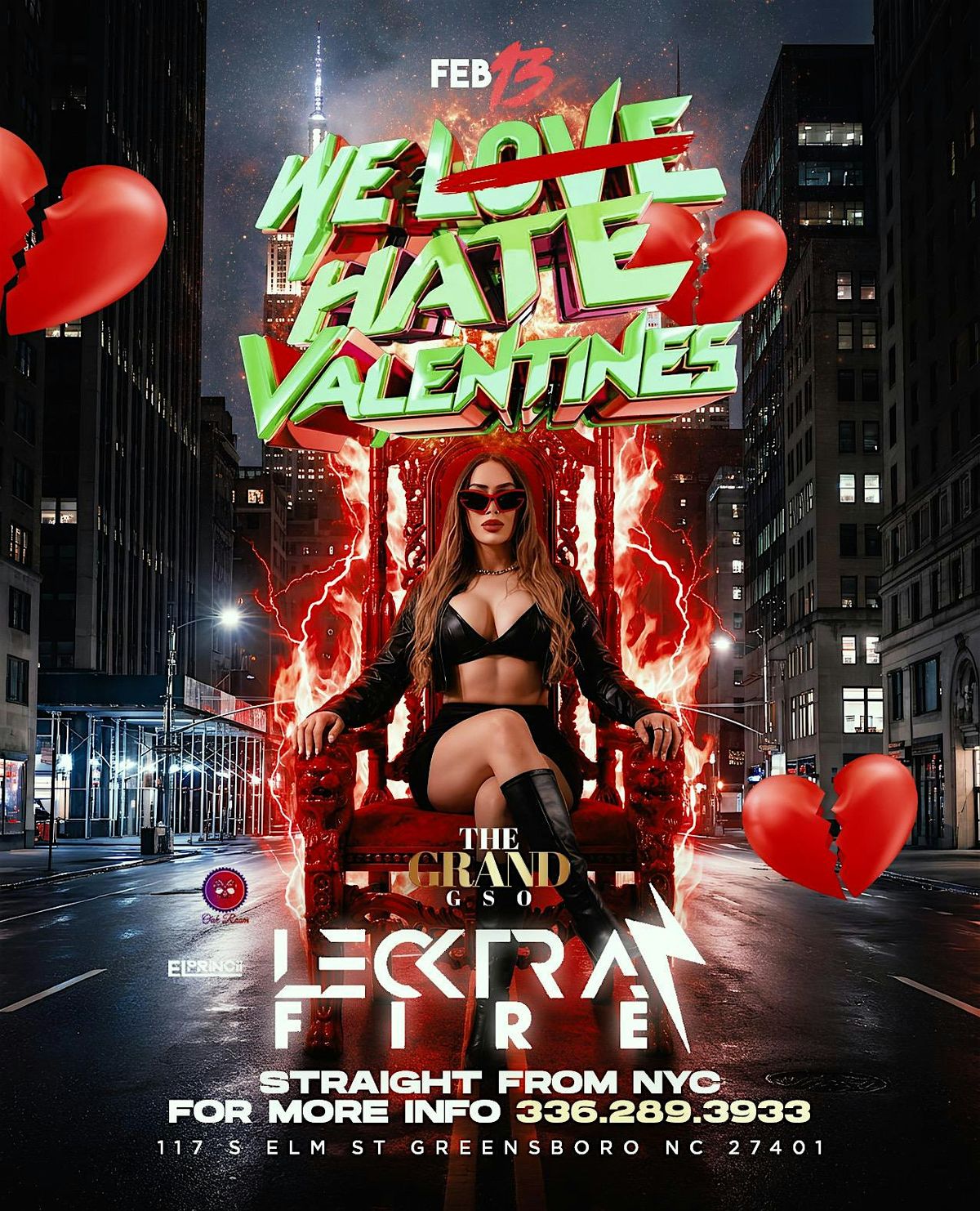 Welcome to WE HATE VALENTINES at THE GRAND GSO! Get ready for an epic night with NYC DJ LECTRA FIRE spinning the hottest beats. Join us on February 13, 2026 at 10:00 PM for a party you won't forget. Let's celebrate anti-Valentine's Day in style! See you there!
