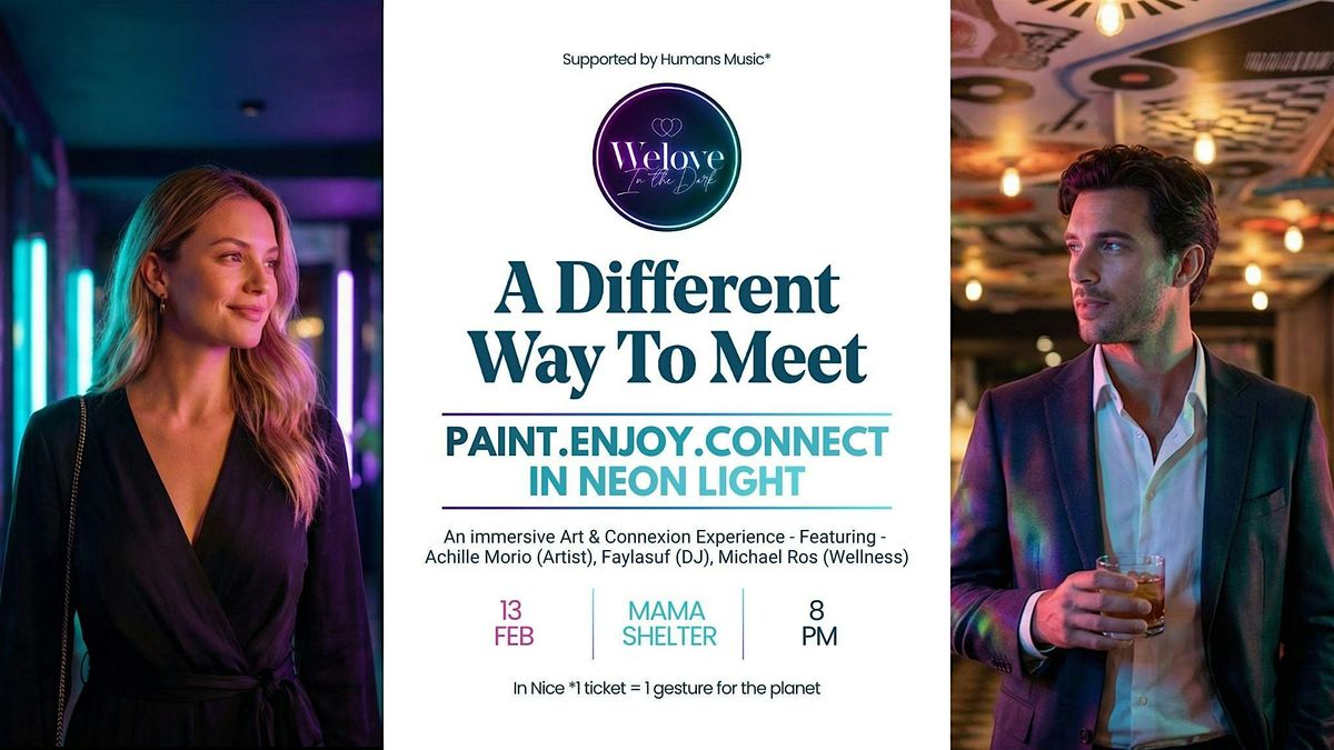 Under ultraviolet light, guided by inspiring artists and surrounded by an immersive sound atmosphere, you’ll paint, enjoy a drink and let connections unfold naturally — through play, intuition and compatibility.