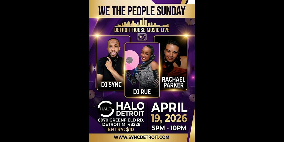 Join us for We The People Sunday April 19, 5–10PM at Halo Detroit with DJ Sync, Rachael Parker & DJ Rue. House vibes, dancing, great people.