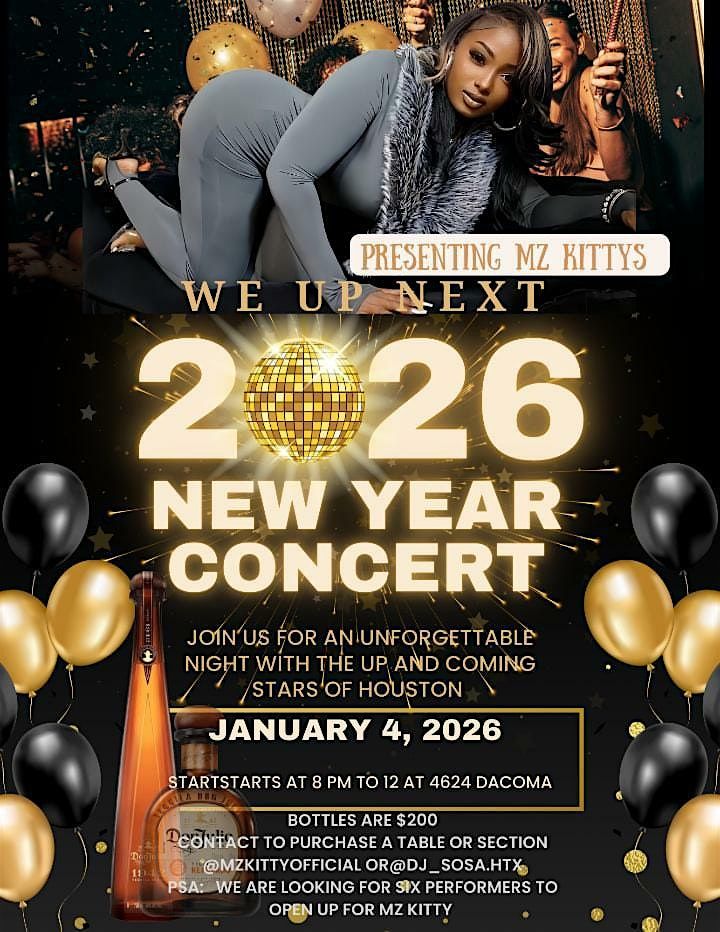 🎄🔥 “Jan 4th we settin’ the city on FIRE — Mz Kitty performin’ live on stage along with some of the hottest artists from around the H! Bottles $200, tables & sections movin’ quick. Hit @mzkittyofficial or @dj_sosa.htx to lock yours in.