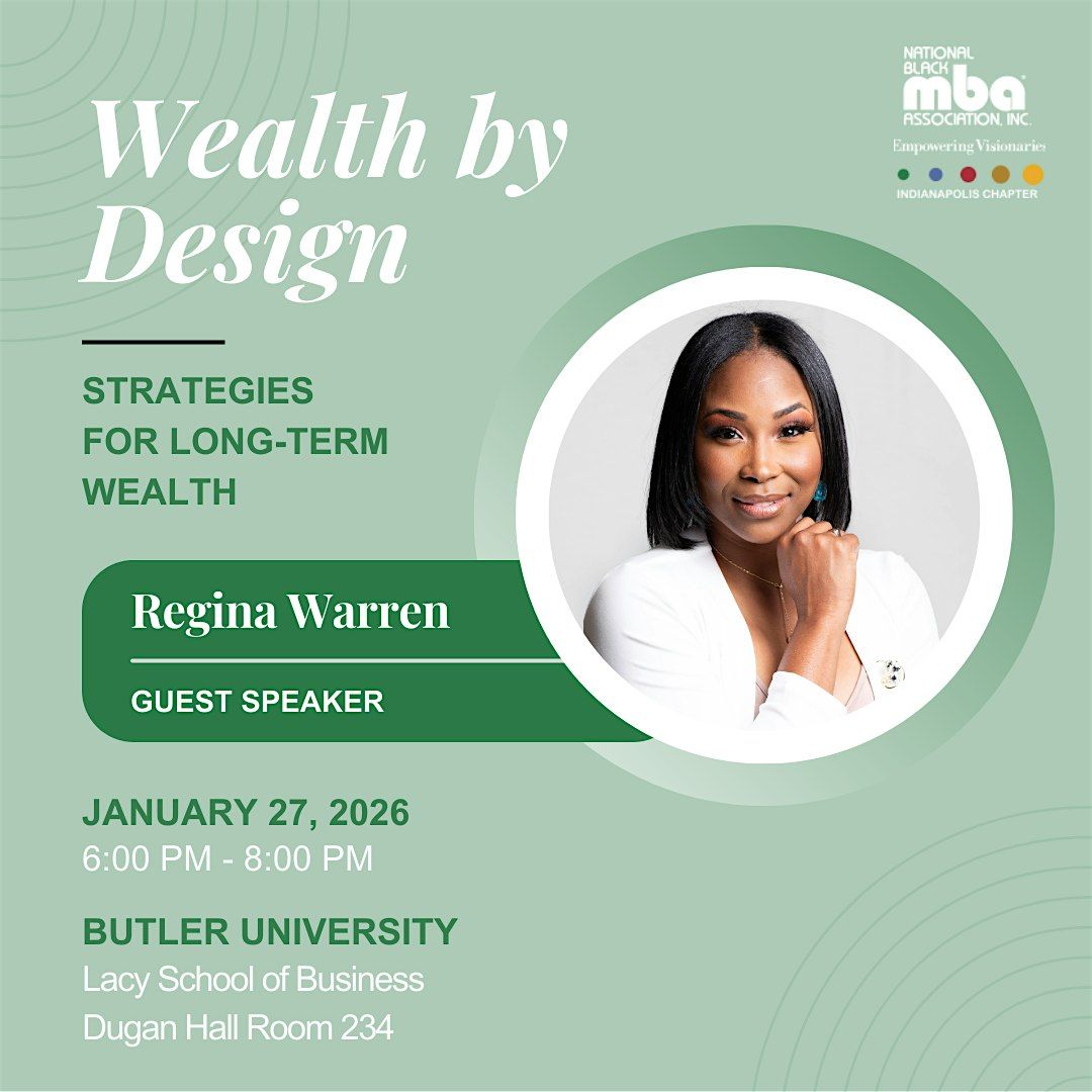 Are you intersted in learning how to build sustainable wealth?...Join the National Black MBA Association, Inc. Indianapolis Chapter at Wealth by Design: Strategies for Long-Term Wealth at Butler University's Lacy School of Business in Dugan Hall Room 234.