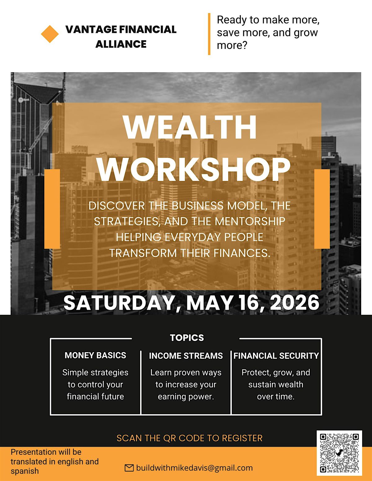 Whether you want to improve your personal finances, explore new income streams, or position yourself for financial independence, this workshop will help you take the next step with clarity and confidence.