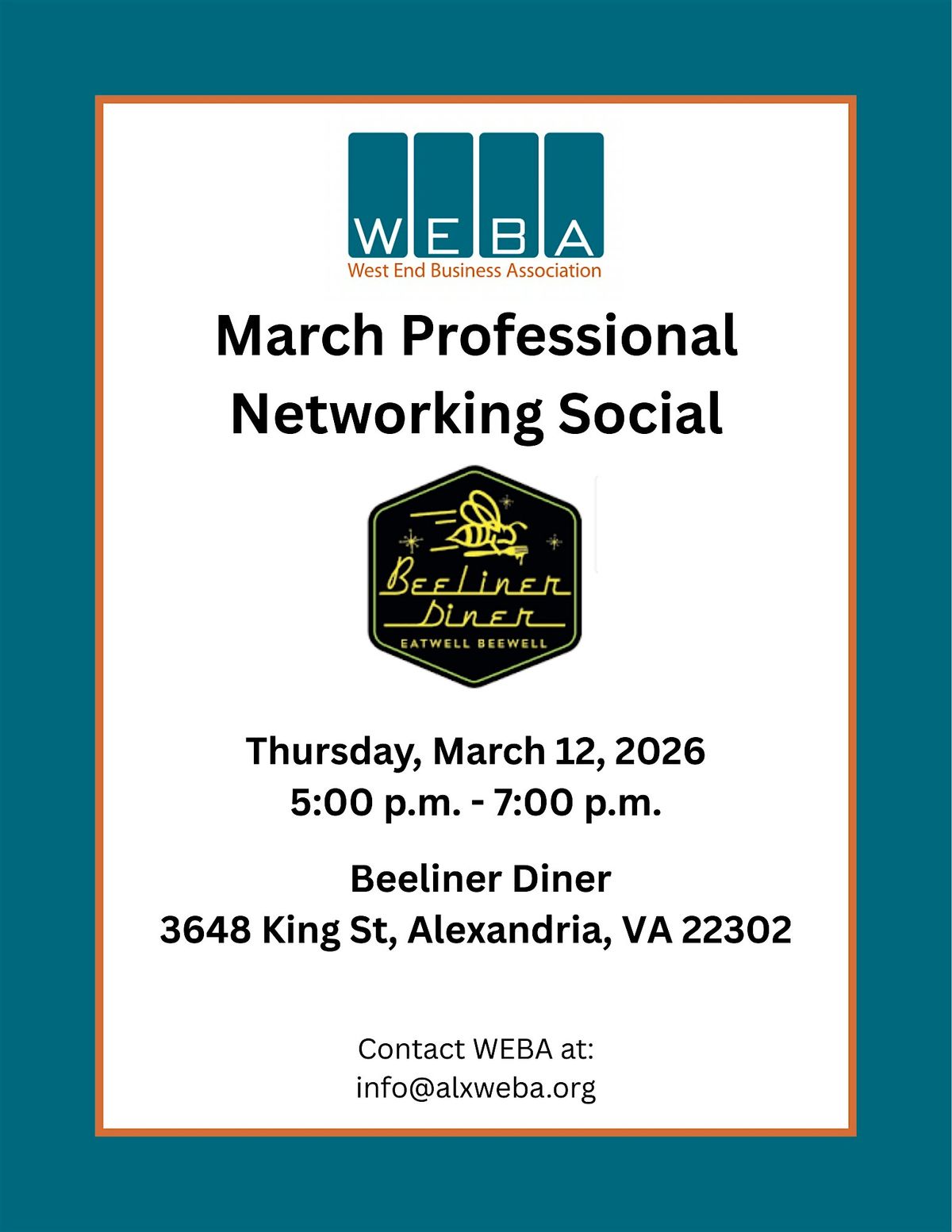 Join us this March at the iconic Beeliner Diner for an evening of high-energy networking! This is a fantastic opportunity to build strategic partnerships and connect with the diverse business community that makes Alexandria’s West End thrive.