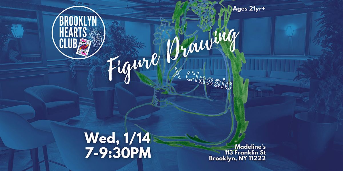 Welcome to Wed, 1/14 Classic X Figure Drawing with Brooklyn Hearts Club at MADELINE'S! Get ready for a fun evening of creativity and inspiration.