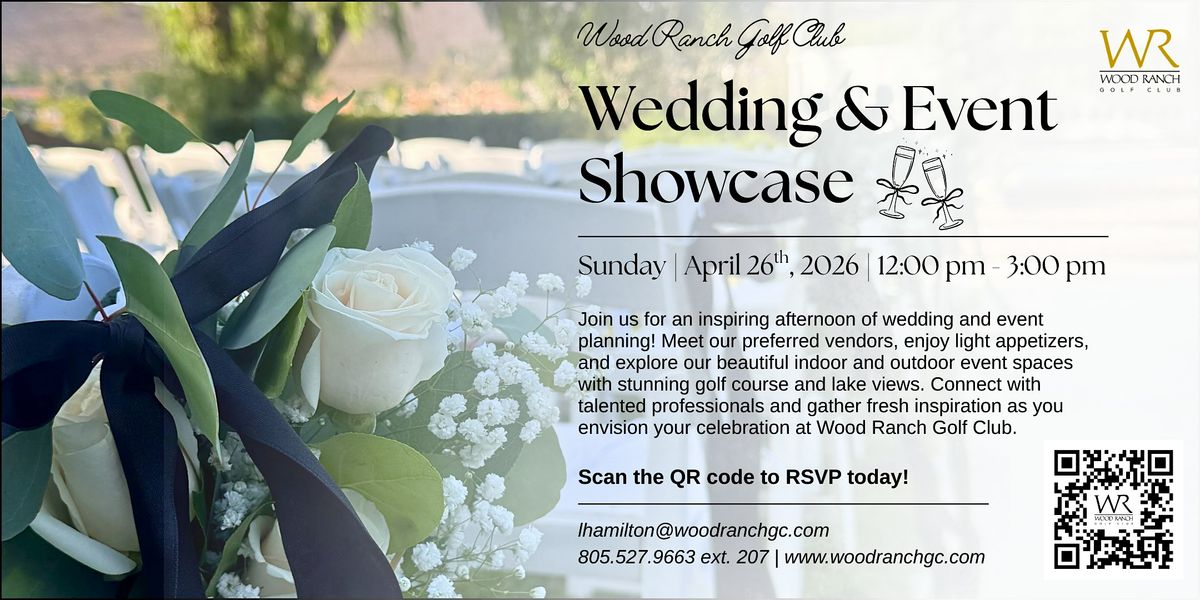 Mark your calendar for April 26th, 2026 and experience an inspiring afternoon at our Wedding & Event Showcase at Wood Ranch Golf Club in Simi Valley.