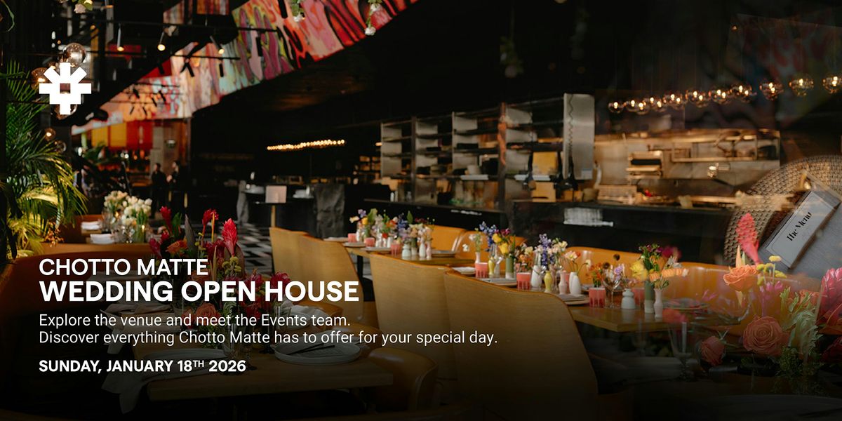 Join us for an exclusive opportunity to explore the stunning Chotto Matte venue and meet our expert Events team and premier vendors. Discover everything we have to offer for your special day, from a breathtaking setting and impeccable service to exquisite culinary offerings. Enjoy a glass of complimentary champagne as you tour the venue and envision your perfect wedding.
