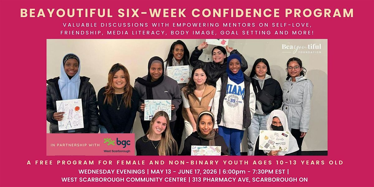 The is so excited to be hosting their newly revised Confidence Building Program in partnership with Boys and Girls Club West Scarborough and welcomes girls + non-binary youth ages 10-13 to join their interactive six-week confidence and self-esteem building program FOR FREE! Work with empowering female leaders and mentors as we cover various topics including confidence building, self esteem, positive body image, media literacy, friendship, goal-setting and MORE in a fun group setting! Whether you come with a friend or leave making new ones, we promise this is a girls group you will want to be a part of.