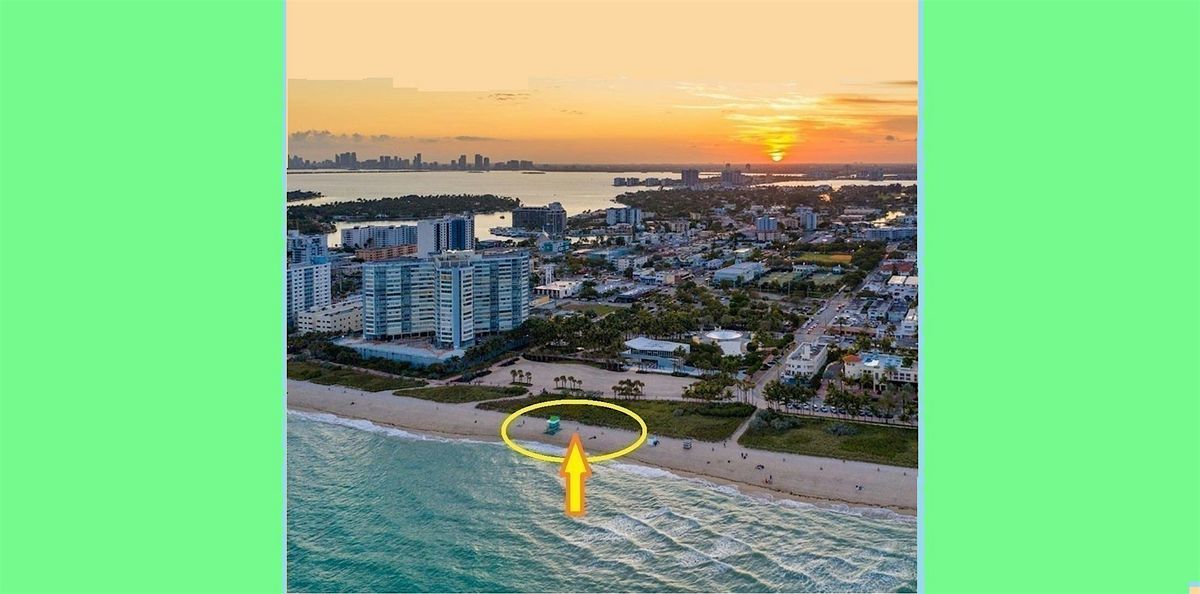 📍Location: on the sand, next to the blue (and green) lifeguard stand, between 72nd & 73rd streets, behind the Miami Beach Bandshell.