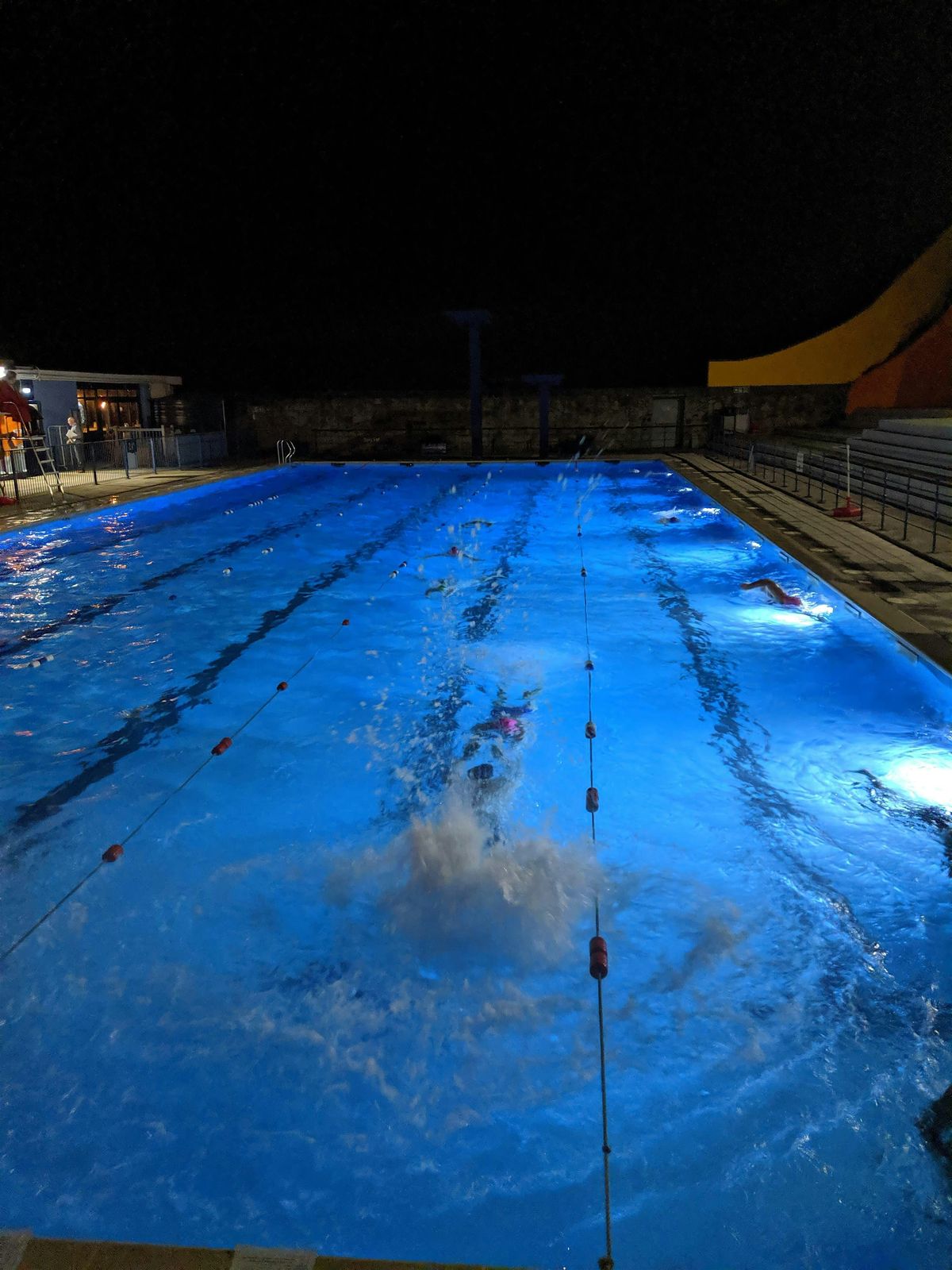 For ADULT swimmers who wish to have a go at an hour of swim-training in the spectacular environment of Portishead's 33 metre Open Air Pool. The aim is to improve general fitness with some tips on technique, but without having to target specific times or gala performance.